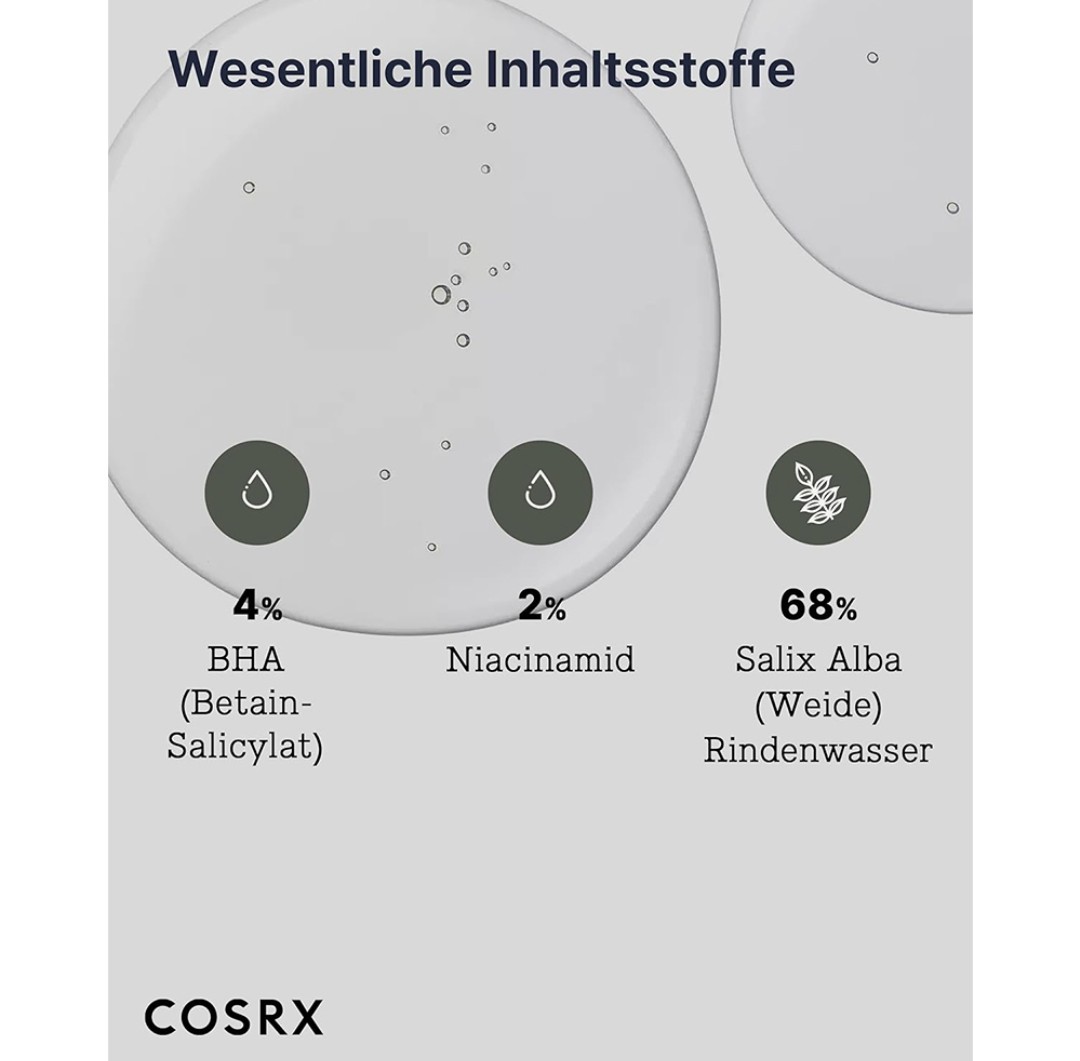 - آب پوسته بید (Salix Alba) + بتائین سالیسیلات: این ترکیب منافذ مسدود شده را پاکسازی کرده و باعث بهبود بافت و تون پوست میشود.